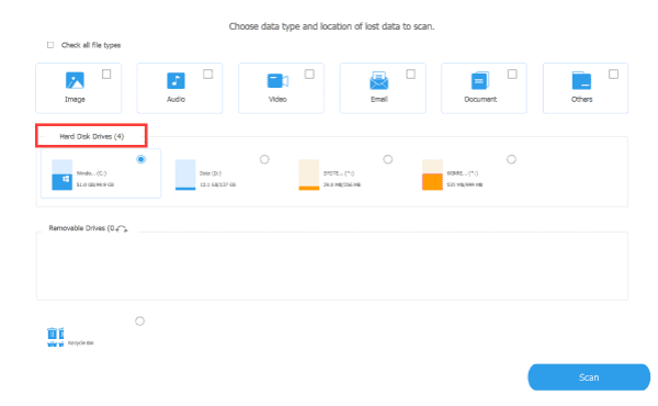 Schritt 1: Laden Sie EelPhone PowerPoint Recovery auf den PC herunter. Wählen Sie das Dokument als Scantyp, wenn Sie keine anderen Daten vom PC wiederherstellen möchten.